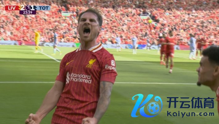 直播吧4月27日讯 英超第34轮,利物浦主场迎战热刺,赤军本场不败即夺冠!第24分钟,麦卡利斯特全国波!利物浦2-1反超热刺!