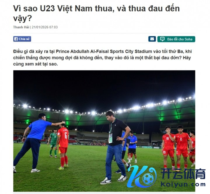 越南媒体“soha”撰文,暗示越南U23压力山大,中国队驻防密不通风让球队无功而返,球队也衰退组织性。