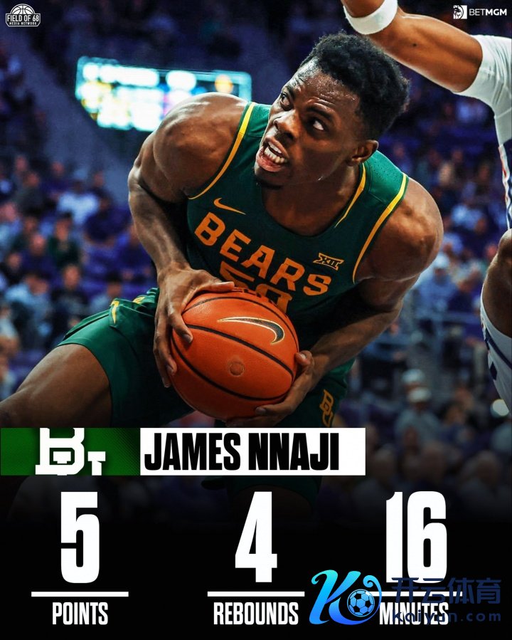 此役,贝勒大学新援、中锋詹姆斯·纳吉迎来首秀,他替补登场16分钟3投2中,罚球2中1,得到5分4篮板1助攻2诞妄。