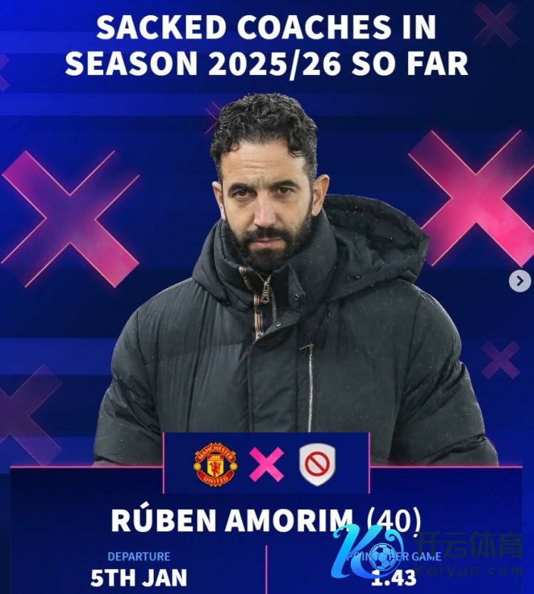 1月6日讯 曼联在本日官宣罢职阿莫林,《转会阛阓》也列出了本赛季被罢职的多位名帅过火场均拿分情况: