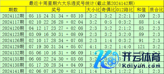 第2024142期大透乐星期六奖号分析: