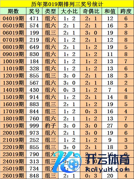 罗列三第2026019期奖号:848体育赛事直播,和值20,跨度4,大小比2:1,奇偶比0:3。