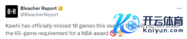 北京技艺11月25日,快船客场对阵76东说念主,莱昂纳德并未随队来到客场,状况被列为“缺阵”。这是快船本赛季的第18场比赛,小卡依然莫得献艺赛季首秀,这也意味着就算他接下来的比赛全勤,他的出场次数也不会达到65场的评奖最低条目,他将无缘本赛季的任何奖项评比。